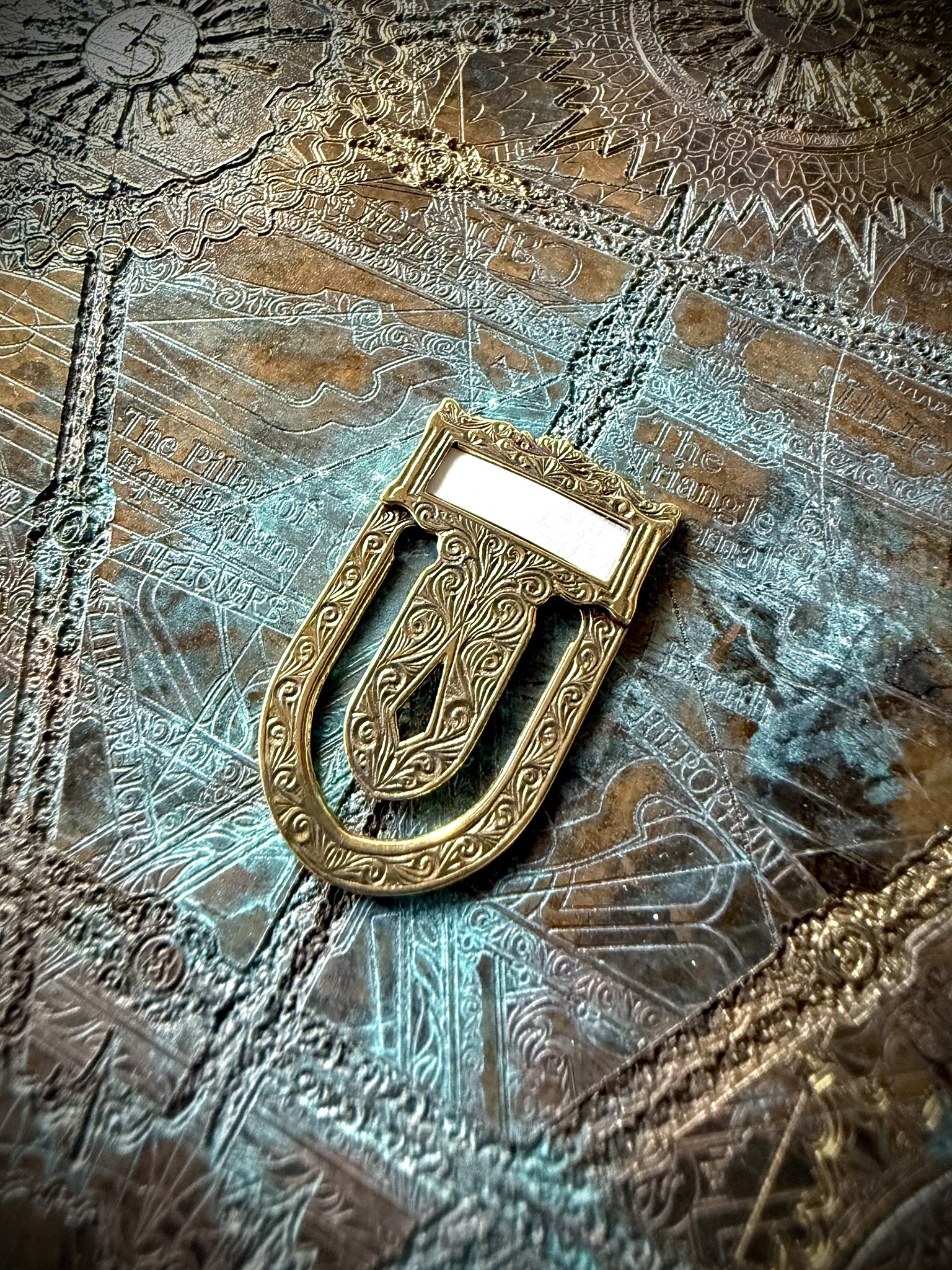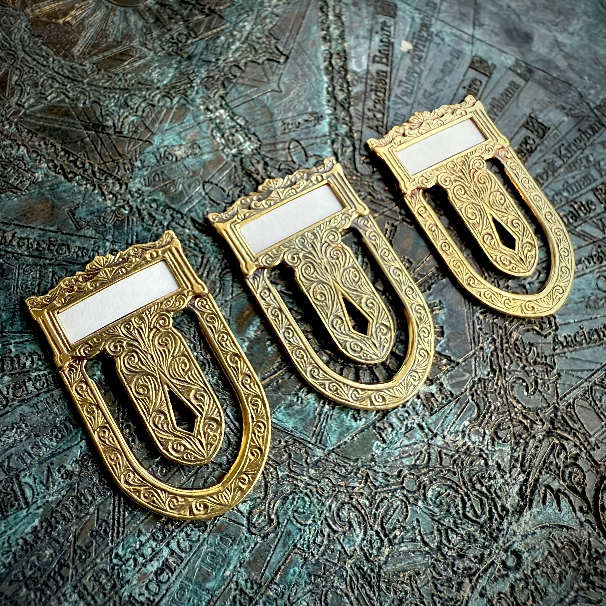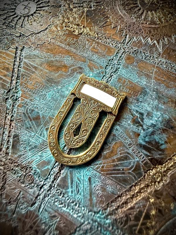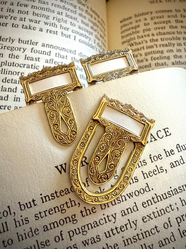「Canna」と題された真鍮製ブックマーク/ラベルクリップ。